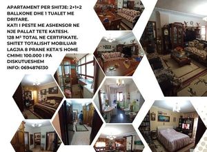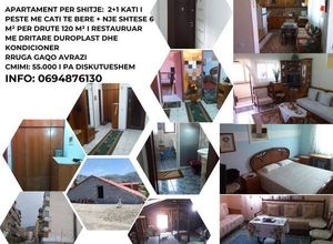 Apartament per shitje: 2+1 kati i peste me cati te bere + nje shtese 6 m² per drute 120 m² i restauruar me dritare duroplast dhe kondicioner